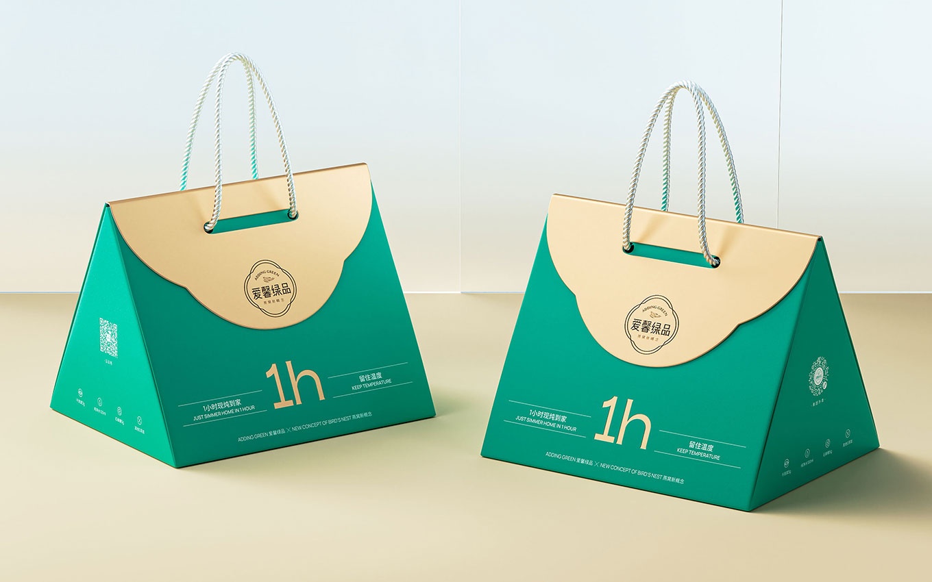 我們的設(shè)計團(tuán)隊(duì)以提升產(chǎn)品在消費(fèi)場景中的顏值為基礎(chǔ),并在不增加包材成本的前提下,致力于讓包裝設(shè)計更具吸引力。最終,我們以大眾熟知的"手袋"樣式作為創(chuàng)意原點(diǎn),為愛馨綠品現(xiàn)燉燕窩創(chuàng)造了全新的包裝設(shè)計。這種設(shè)計不僅使消費(fèi)者能夠方便地拿到新鮮快速的外賣產(chǎn)品,還給予了禮品式的體驗(yàn),為品牌帶來了強(qiáng)烈的美譽(yù)度。